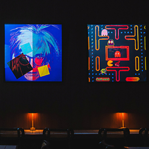 ディナータイムは照明をぐっと落としてアートと音楽の素敵な空間を楽しみながらアメリカンダイナーのお食事とお酒をお楽しみいただけます!落ち着いた店内で素敵なディナータイムを演出。どうぞゆったりとお過ごしください♪