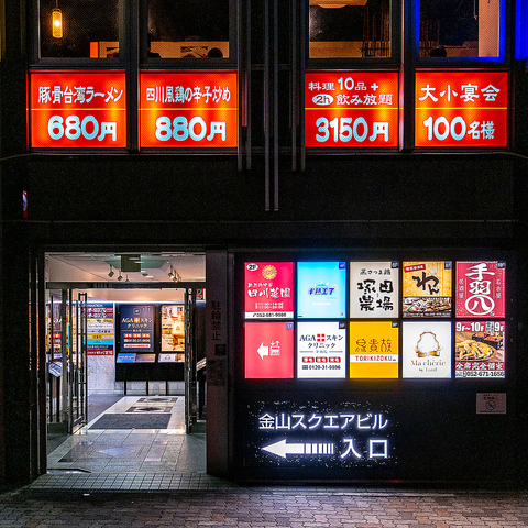 全席掘りごたつ席の足元楽々、広々空間♪金山駅より徒歩2分のため宴会やお集まりに◎最高の雰囲気で会話も弾み楽しいこと間違いなし!!ご宴会にもおすすめ!人数のご相談等承ります。団体/接待/貸切/フロア貸切/完全個室/歓送迎会/宴会 など各種OK!お気軽にお問い合わせください。