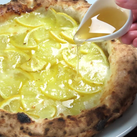 ビアンカ+スライスレモン、蜂蜜(爽やかなスイーツピッツァ)