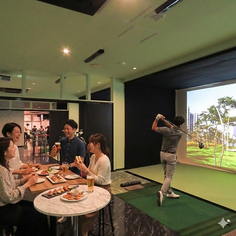 完全個室のプライベート空間で、心ゆくまで思いっきりゴルフが楽しめる夢のような空間!ゴルフブースは2部屋ご用意しており、各ブースに高性能のシュミレーターマシンを導入しております。プライバシーの守られた完全個室は、パーティー・ご宴会にも最適◎お酒を片手に、皆でワイワイ周りを気にせずお過ごしいただけます。