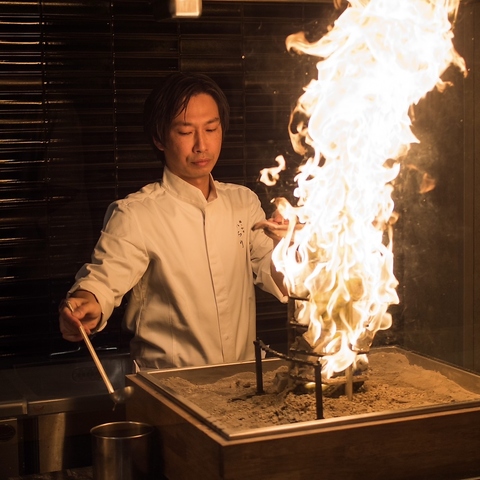 炭火の香りが漂う店内で、職人が握る鮨と和食を堪能。臨場感あふれる調理の所作や、炭火で仕上げる逸品が五感を刺激します。生簀完備の空間で旬の魚介を鮮度そのままに味わい、特別なひとときを大人の贅沢としてお愉しみいただけます。当店一押し「鰹の炭焼き」、サーモンハラスは必食です。