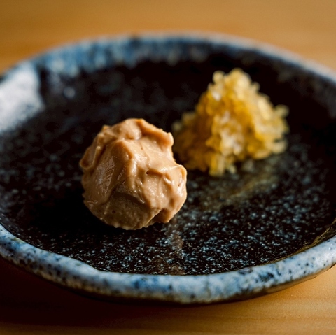 脂ののったイワシと彩り野菜を丁寧に仕立てた「イワシのあて巻き」は、酒の肴に最適な逸品。さらに「あん肝ソース奈良漬添え」など、職人が工夫を凝らした多彩な酒肴も充実。鮨だけでなく、和食の奥深い味わいを愉しめる空間で、厳選銘酒とともに贅沢な時間を心ゆくまでお過ごしください。