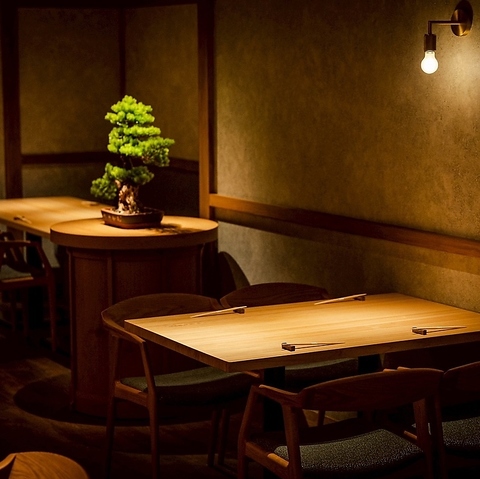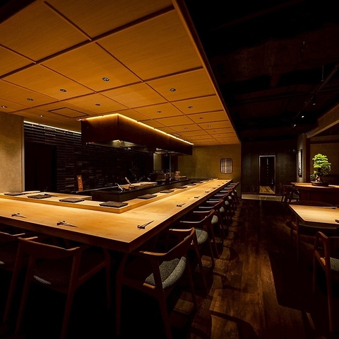 駅近ながら静寂に包まれる落ち着いた空間です。木の温もりと柔らかな灯りが心地よく、カウンター席やテーブル席でゆったり過ごせます。大人が贅沢に寛ぐ特別な時間を存分にお愉しみください。予約受付カレンダーが満席でもお席が空いている場合がございます。いつでもお問い合わせくださいませ。