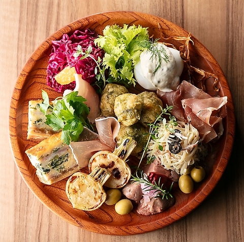肉と一緒に『 イチバのウラ前菜盛り合わせ 』を是非。お食事の前菜としても、ワインやお酒のお供にもぴったりです。イチバのウラといえば肉。『 イチバのウラの炭火焼き牛ステーキ 』など焼きはもちろん『 ハーブを効かせたポークカツレツ 』や『 黒毛和牛のわさビーフ 』など様々な調理法で魅力的な肉料理を多数ご用意。