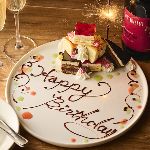誕生日や記念日に◎お祝いケーキプレート(1,500円)ご用意♪素敵な思い出作りにいかがですか?