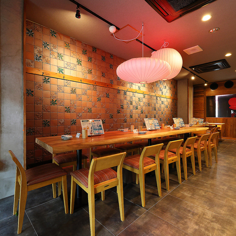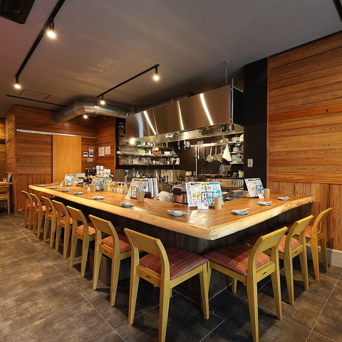 テーブルは4名席ですがご利用の人数に応じて結合等ご活用くださいませ。店内のアットホームな活気ある雰囲気で、お客様それそれ楽しいひと時をお過ごしくださいね!お1人様でお楽しみ頂けるカウンター席が10席ございます