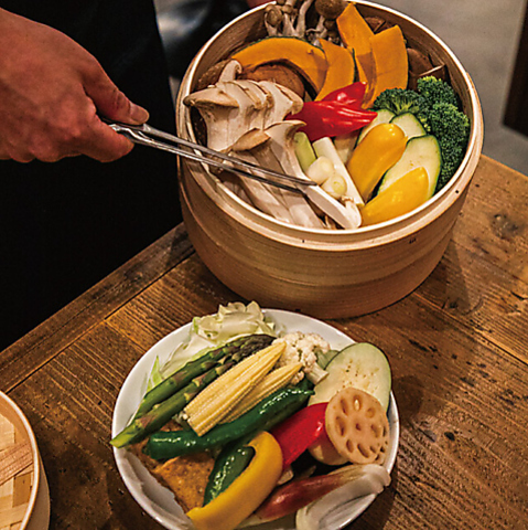 お通し代として500円(税込)でおかわり自由の焼野菜をご提供!生野菜スティックもあります◎