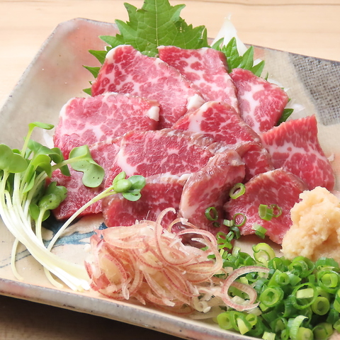 熊本名物として外したくない馬刺し!特選霜降りをご用意してお待ちしております。熊本郷土のお料理だけではなく、季節のお料理やお刺身など幅広いメニューからお選びいただけますので、いつだれとお食事を…となった際にも間違いない♪