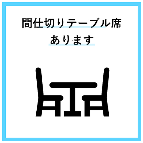 | テーブル | 4名様×7 | 【4名様テーブル】全7卓(28席)。間仕切りのあるテーブルは周りの目を気にすることなくお過ごし頂けます。 |