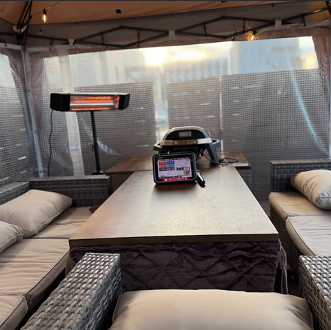 全席こたつ&大型ヒーター完備!野外でもぽっかぽか!!世界一温かい屋上かも!?