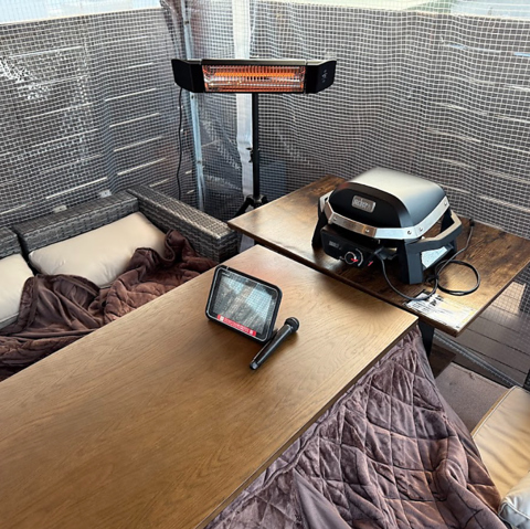 | 個室 | 8名様×3 | 冬季は全席こたつ席にチェンジ!野外×こたつの新感覚CHILLを楽しめます |