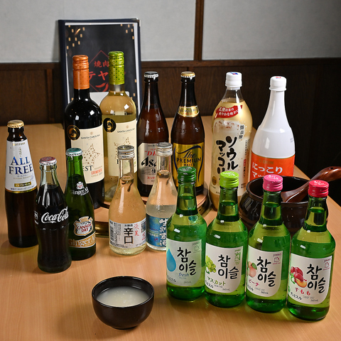 焼肉やおつまみメニューにもピッタリなお酒を種類豊富にご用意しております。またグラスでのご提供はもちろん、焼酎やワイン、マッコリはボトルでのご用意もございますので、団体様での飲み会や打上げにも最適です◎多彩なシーンでご利用ください。