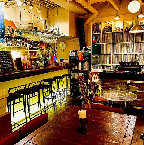 壁一面のレコードが奏でるのは、時間旅行のような音の物語。DJブースから流れる音楽と共に、あなたの夜を特別な一幕へ。音好きの心をくすぐる隠れ家で、五感ごと酔いしれてみませんか?