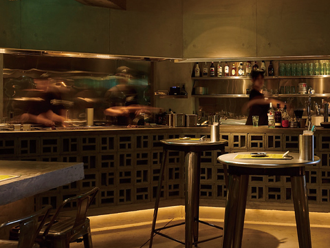 躍動感あるオープンキッチン♪ カウンターやテーブル席、スタンディングもございます。