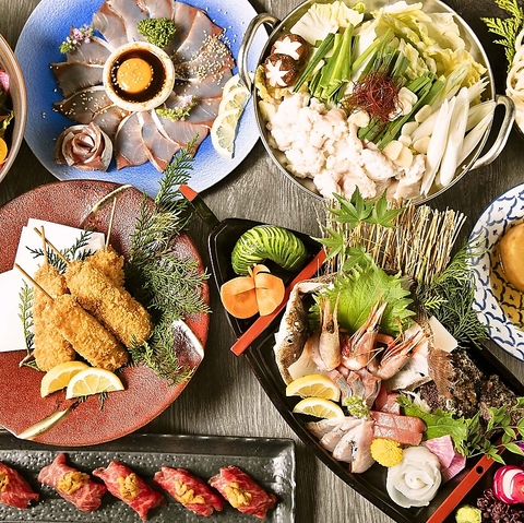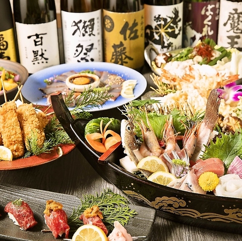 黒毛和牛のステーキや大海老の天ぷら、明石鯛のイクラ鯛めしなど当店自慢の料理が並ぶご宴会コースは4000円~。全コースにたっぷり3時間飲み放題もついてご宴会もお楽しみいただけます。飲み会はもちろん、女子会,合コン,誕生日のお祝い等多様なシーンにご利用ください!