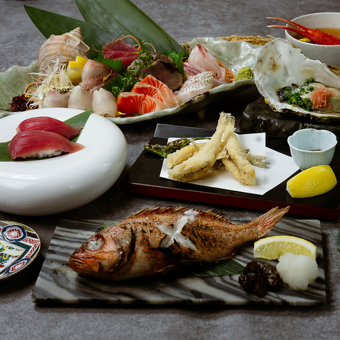 漁師直送の鮮魚を豪快に盛り込んだ宴会コース。旬の海鮮と日本酒で贅沢なひとときをお過ごしください。