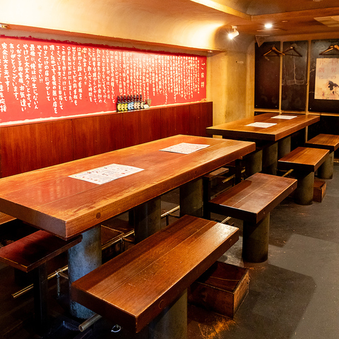 最大16名まで着席可能な広々としたテーブル席は、グループでの食事や宴会にぴったりです◎ゆったりとした空間で、周りを気にせず仲間と楽しい時間を共有できます。ボリューム満点の居酒屋メニューを囲んで、会話も弾むこと間違いなしです!