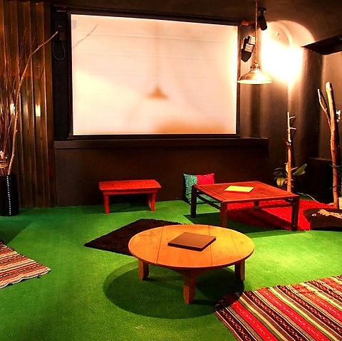 店内には、ふかふかの芝生が敷き詰められたユニークな小上がり席がございます◎靴を脱いで足を伸ばしてゆったりと過ごせるので、まるで自宅にいるようなリラックス感で食事を楽しめます。大型スクリーンも完備しており、スポーツ観戦をしながら仲間と盛り上がるなど、特別なひとときをお過ごしいただけます。