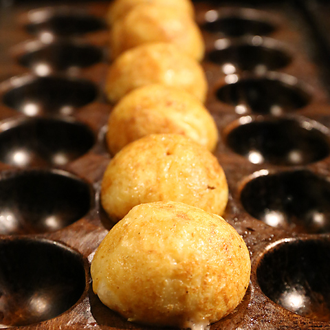 《名物蛸焼き》美味しさの秘訣はなんと言っても「生地」にあります。昆布出汁・かつお出汁・鶏白湯スープで作ってます!旨みが凝縮されたアツア ツの蛸焼きをぜひご堪能ください!※一人前6個入り※一度に焼ける数が限られている為、ご注文の際はお早めにお声がけください。