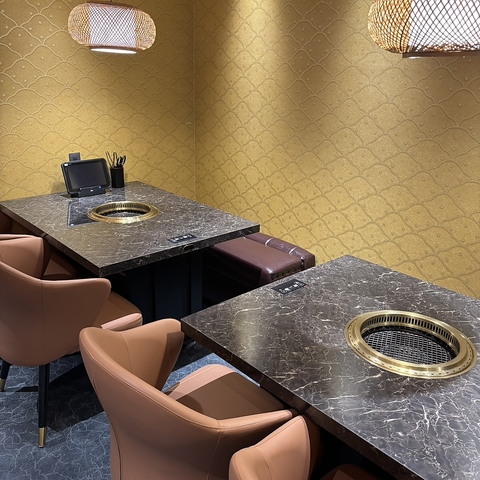 おひとり様でお食事を楽しみたい時や、大人の焼肉デートにぴったりなカウンター席は気軽に座れる人気のお席。お子様連れのご家族や女子会などに使いやすいソファー席もご案内可能です。さらに8名様までご利用可能な個室もなど、人数に合わせて幅広いシーンでご活用いただけます