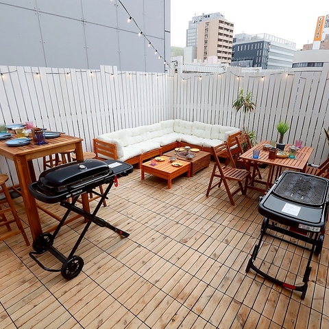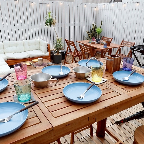 屋上BBQテラスで楽しいお食事をお楽しみください!飲み放題はバーカウンターでご注文ください♪ご友人と。職場のお仲間と。結婚式の二次会など。様々な用途でMARUTTOをご利用ください。