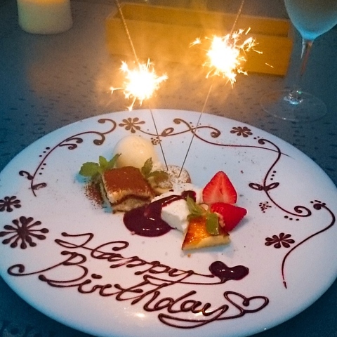 【記念日・誕生日に♪】前日までのご予約+クーポン利用にて『特製デザートプレート』をサービス!!思い出に残るサプライズ演出お手伝いします!詳細はクーポンページをご参照ください。