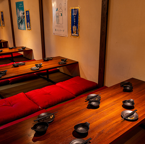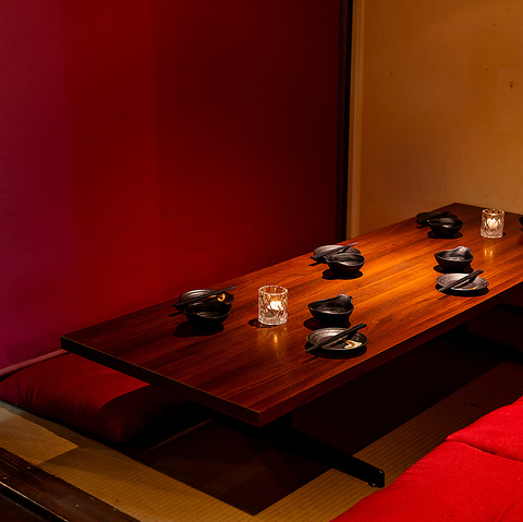 小人数様~大人数様迄。お座敷タイプの完全個室。デートやお二人での食事に最適な半個室席も完備。周囲を気にせず語らえるプライベート感が魅力で、記念日や大切な人とのひとときをゆったりと演出いたします。