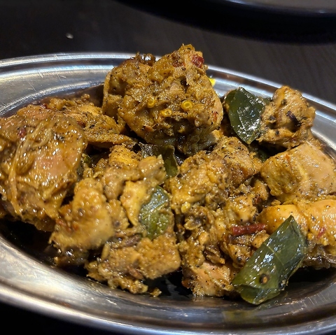 黒胡椒とスパイスで炒めた南インド風チキン。