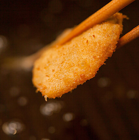 適度なコクと何本でもいける軽さを実現するために、動物性と植物性の油を絶妙なバランスでブレンドしました。さらには素材によって揚げる温度にまでこだわることで素材の持ち味を極限まで引き出し、熱々をご提供いたします!