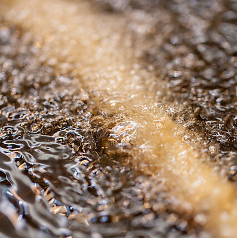 動物性と植物性の油を絶妙なバランスでブレンドした、こだわりの【絶妙ブレンド油】!一串一串、職人の手で丁寧に仕上げています。