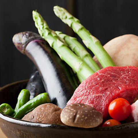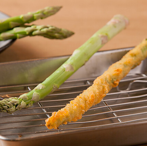 食べ応え◎な【アスパラ】!他にも【玉ねぎ】や【なす】、【ヤングコーン】や【アボカド】など豊富に取り揃えている野菜串は女性にも人気です♪