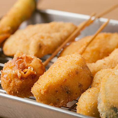大阪スタイルの極細パン粉でサクッと軽やかに揚げた串揚げは、一串一串、職人の手で丁寧に仕上げています。