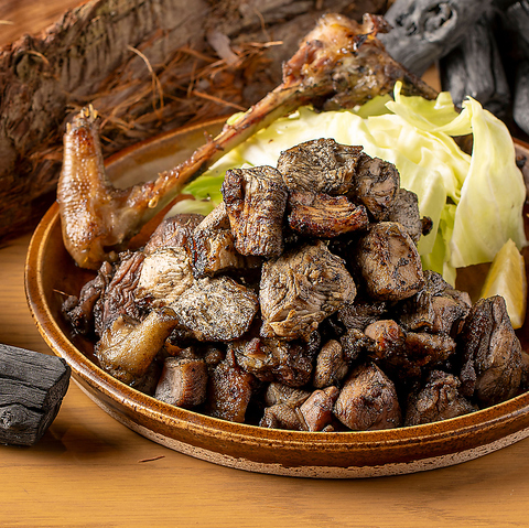 とりとりと名物!必食の一皿。その時々で全国より仕入れる銘柄鶏を筑前備長炭で豪快に焼き上げます。