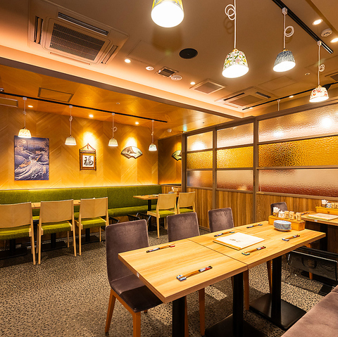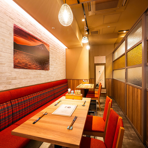 ソファ席は、ゆったり過ごせる人気のお席。仕切りを利用すれば個室としてもご利用いただけるため、周りを気にせずお食事や会話を楽しめます。デートや接待、少人数の宴会など、特別な時間を過ごしたいシーンにもおすすめです。