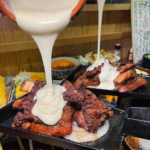 看板メニュー★骨付きカルビ炭火焼き!チーズトッピングも大好評♪