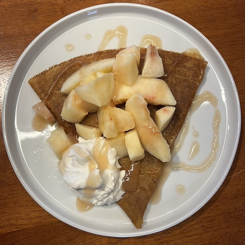 クレープだけじゃなく手作りケーキやその他スイーツも♪※写真は期間限定の『桃カスタードミルククレープ』