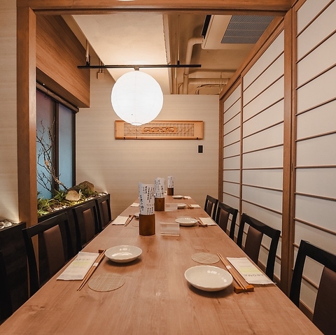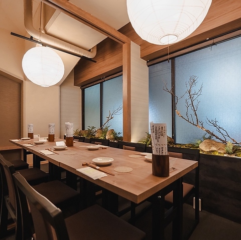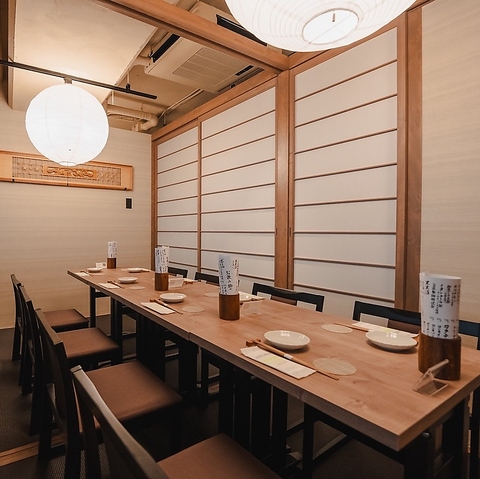 【個室もご用意★8名~12名様までOK♪】個室席で特別な時間を過ごしませんか?静かなプライベート空間で、心からリラックスできるひとときをお楽しみいただけます◎和の趣を感じるインテリアと間接照明が、落ち着いた雰囲気を演出。ゆったりと食事や会話を楽しむことができるので、デートや大切な方とのお食事に最適です◎