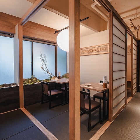 完全個室で、特別なひとときをお過ごしいただけます。落ち着いた雰囲気で、周りを気にせずリラックスできるのが魅力です。落ち着いた雰囲気のお席は心地の良い、ゆったりとした時間を過ごせます。プライベート感溢れるこの空間で、仲間との大切な時間をお楽しみください。