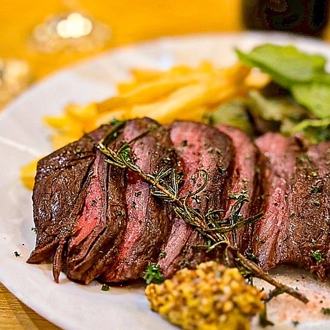 肉本来の旨みを堪能できるジューシーなステーキ。香草の香りとワインやウイスキーの相性も抜群です♪