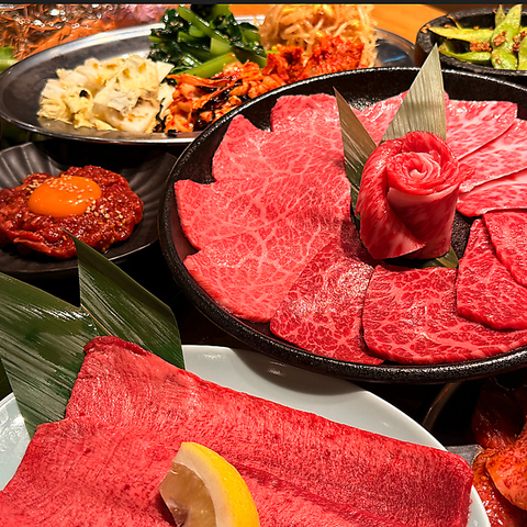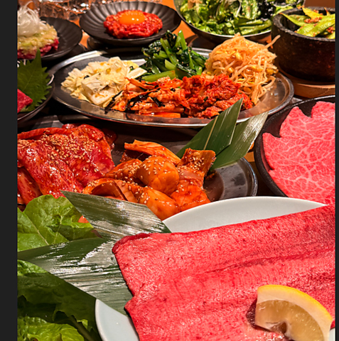 黒毛和牛を中心に、大判タンや中落ちカルビ、タレハラミなど豪華部位を盛り込んだ特選コース。ユッケやナムルも楽しめ、〆には冷麺またはクッパ、最後はデザートまで付いた全12品で大満足の内容です。会社宴会や特別な日のご利用にも。コースは複数ご用意しております!詳細はコースページをご覧ください。