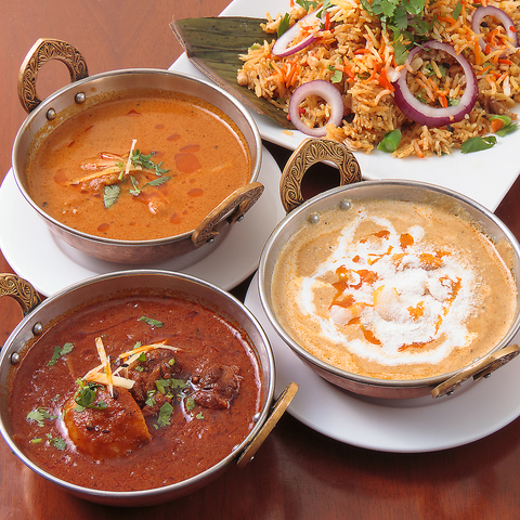 料理長はインドの一流レストランでも料理長を務めた経歴30年の腕利き。カレーは辛さ調節可なのでお子様でもお召し上がりいただけます。50種類以上のスパイスを調合し、独自のレシピで本格的な味をご提供します