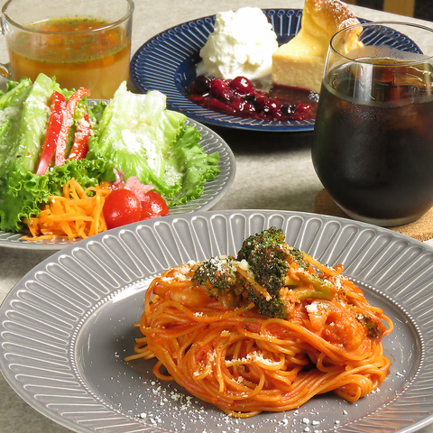 選べるメインプレート(サラダ付き)・スープ・ドリンク・デザート(アイスorケーキ)。旬の食材を使った「本日のパスタ」など、シェフのおすすめメニュー。季節の野菜や魚介、こだわりのソースで仕上げた一皿は、ここでしか味わえない特別な美味しさ。ランチにぴったりの逸品です。