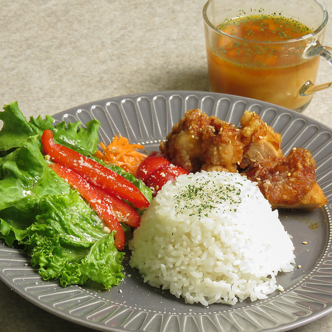 キムチーズキンパorヤンニョムチキン・本日のパスタ・甘辛唐揚げ・ナシゴレン〈SET DRINK〉・ブレンドコーヒー(Hot/Ice)・紅茶(Hot/Ice)/アップルジュース/カフェラテ(Hot/Ice)+50円(税込)