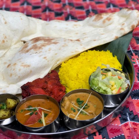 カレーは、チキン・マトン・野菜・シーフードなどのいろんな種類からお選びいただけます。インドから輸入したスパイス、北海道産のチーズ・バターや国産米といった食材にもこだわりました。おすすめの「バターチキン」は、お子様からご年配まで食べられる、トマトベースのマイルドな味です。