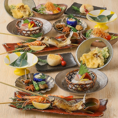 旬の新鮮魚介を楽しめるお造り盛合せや焼き魚、寿司などメニューが盛りだくさん。