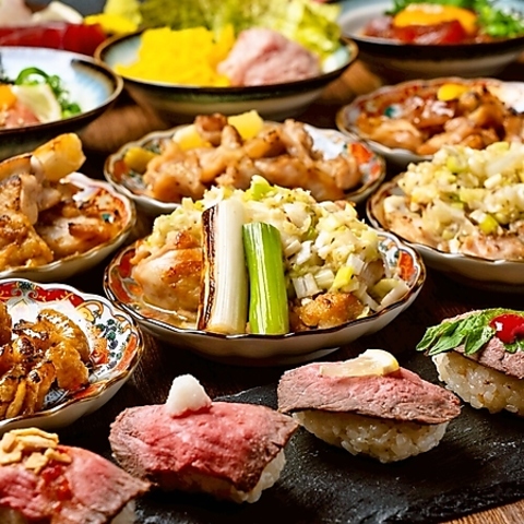 【宴会に★プレミアム食べ飲み放題】3時間◆焼き鳥、海鮮、寿司、肉寿司付きの食べ飲み放題♪全121品♪