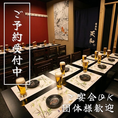 【宴会最大100名様迄】広々とした店内でご宴会を!上質な食材を使用したお料理をリーズナブルに楽しめる「天和-あまと-」では、市場直送の鮮魚をお造り等でご堪能いただけます。料理と相性抜群のドリンクも種類豊富にご用意!生ビール・ワイン・日本酒・焼酎等、お客様のお好みでご注文ください♪ひと時をお過ごしください