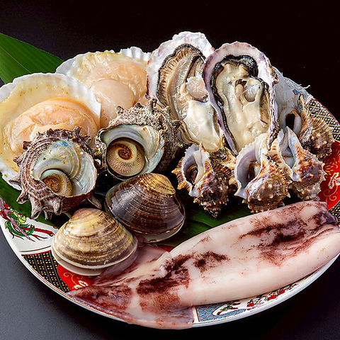 鮮度抜群の海鮮にこだわり、心ゆくまでご堪能いただける海鮮料理を多数ご用意しております◎特に大人気の浜焼きは、お客様の卓上で直接焼き上げるスタイル♪香ばしい香りが食欲をそそり、五感で楽しめるのが魅力です。サザエやほたて、はまぐりなど、旬の海の幸をお酒と共に味わえば、至福のひとときをお過ごしいただけます!