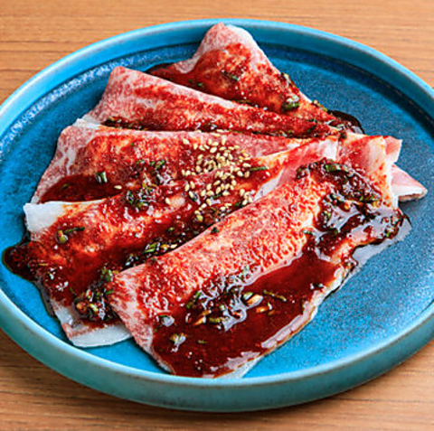 広島名物コウネ。別名ブリスケ旨味たっぷり脂もついているのでジューシー。コラーゲン多く美容にも良い。専用のタレとの相性バツグン。是非ご飯と一緒にお召し上がりください。