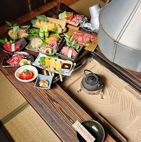 囲炉裏の中でさりげなく灯る炎が非日常感を演出。個室で二人きりの時間を、心ゆくまでお楽しみいただけます。和の料理が彩るデートには、お互いの距離を一層縮め、会話も弾みます◎ぜひゆっくりとお過ごしくださいませ。